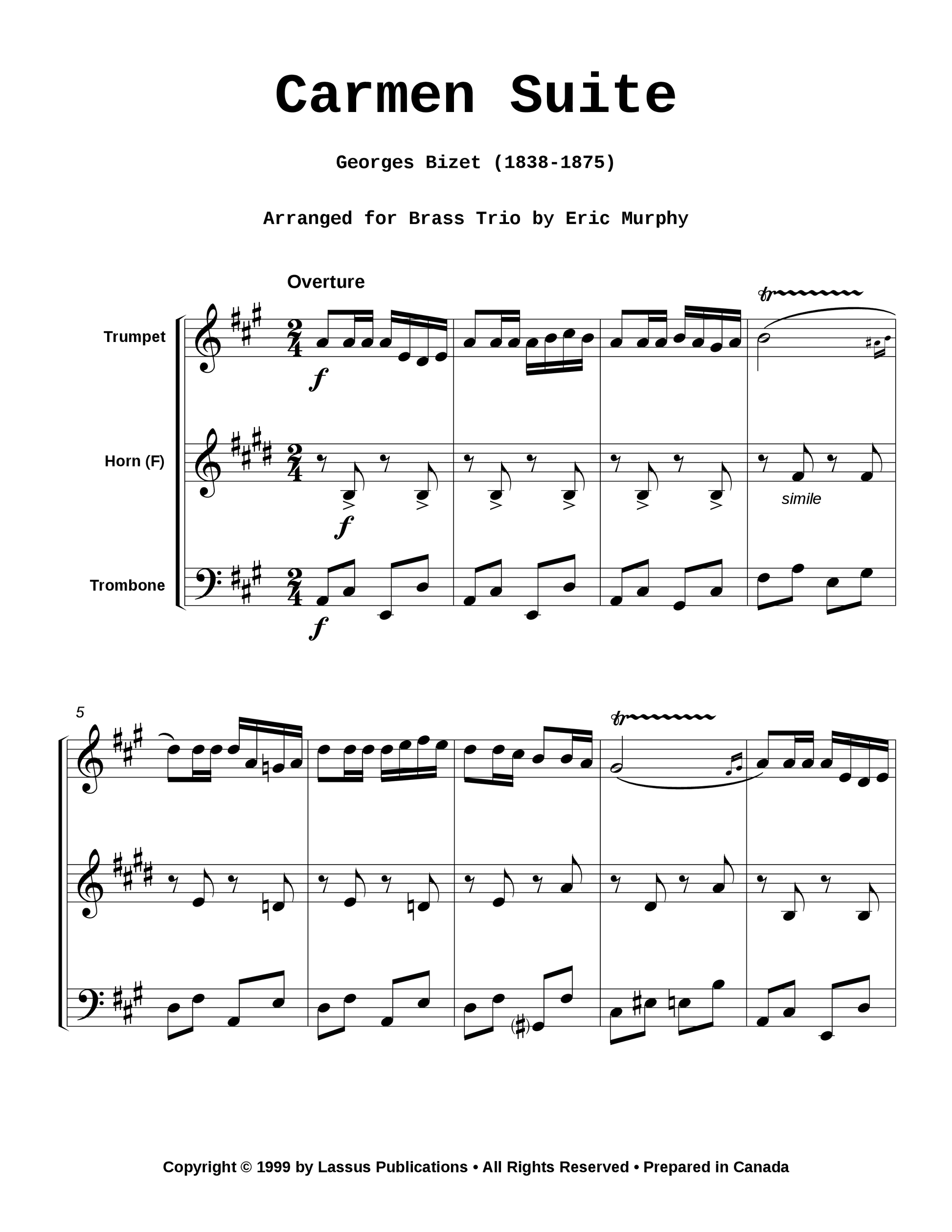 Includes Overture and Andante, Habanera, and Toreador Song