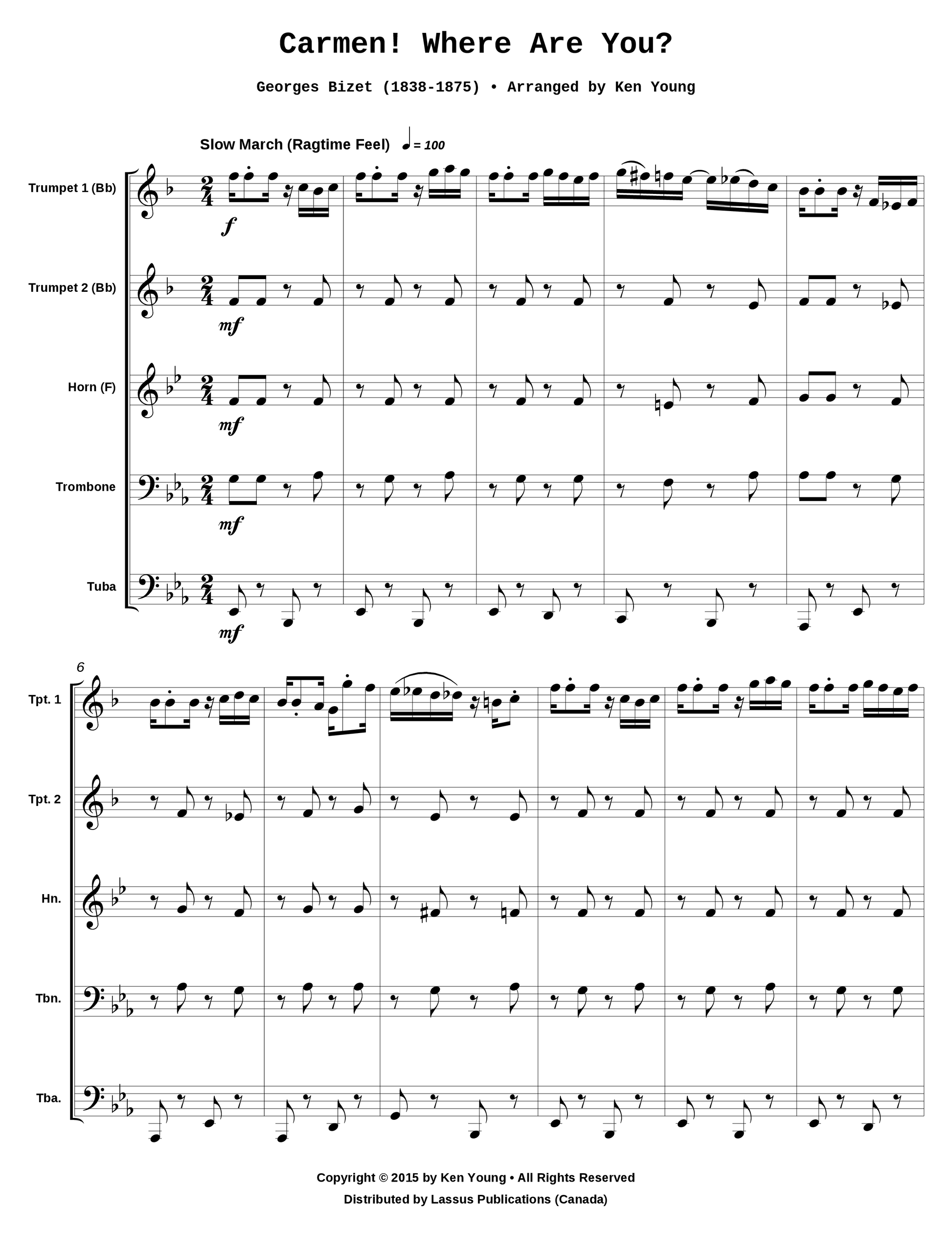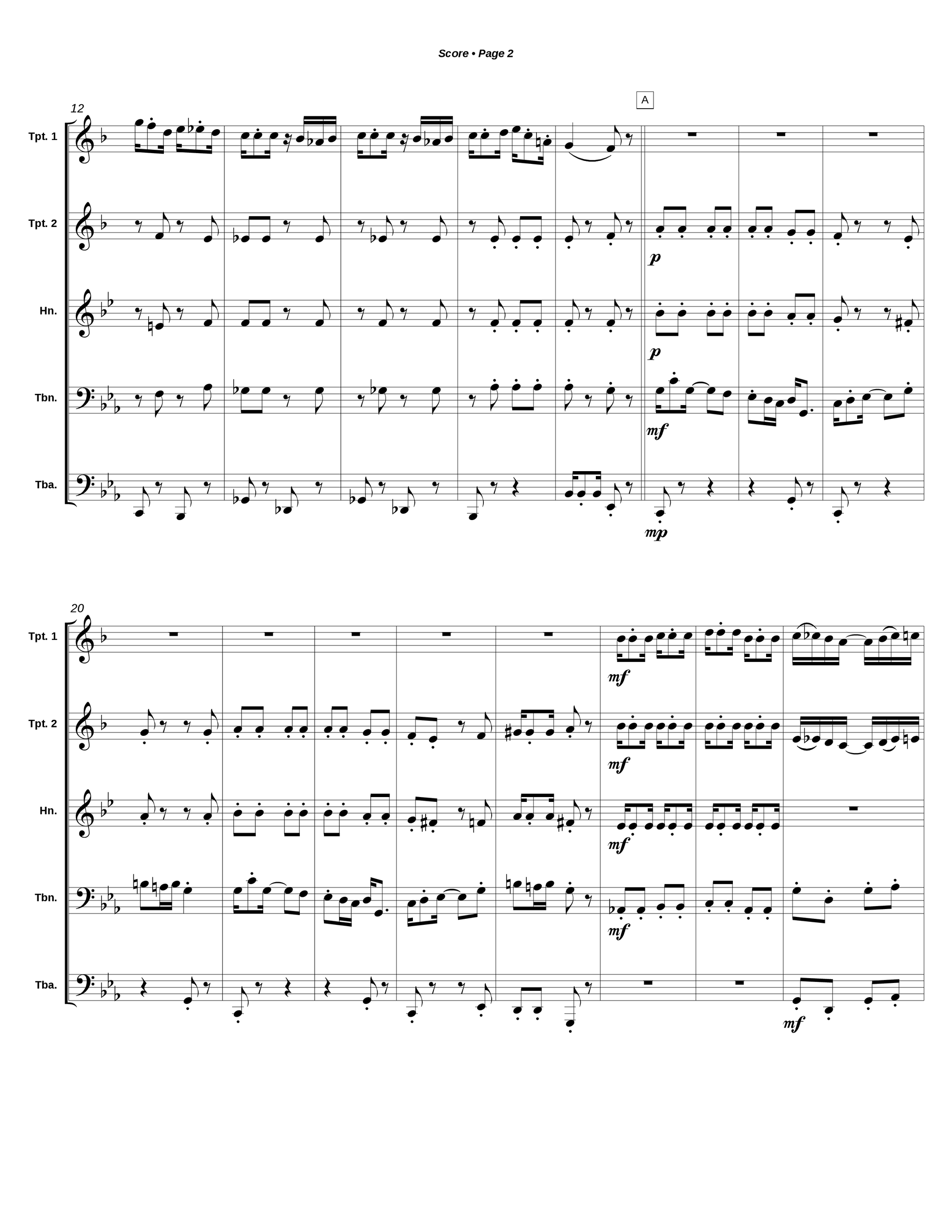 Two trumpets (Bb), horn, trombone, tuba