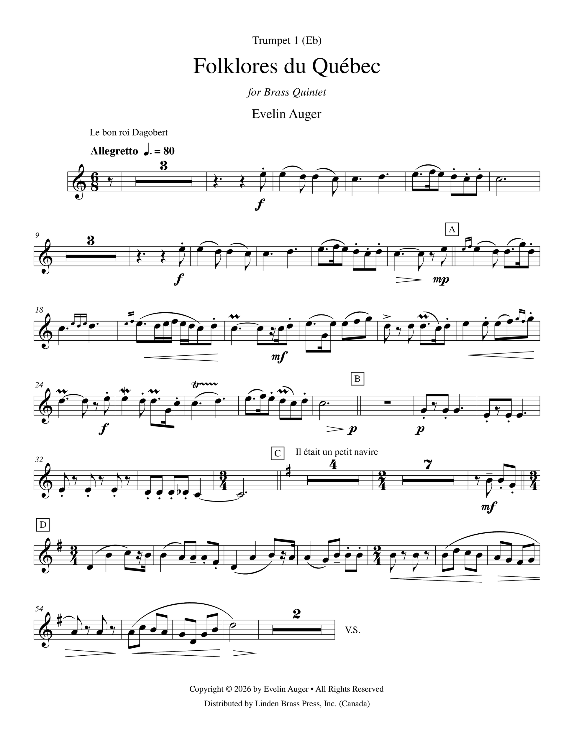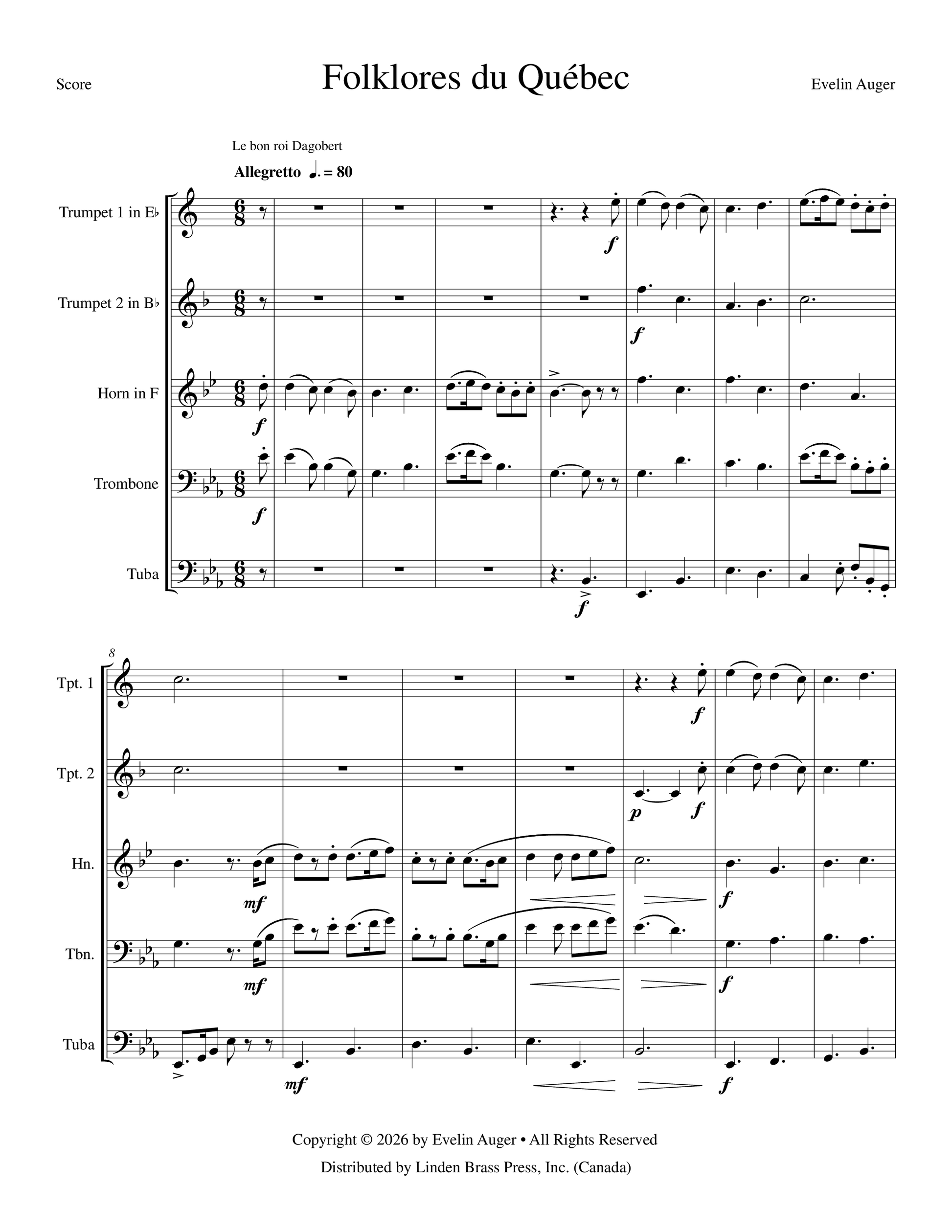 Instrumentation: Trumpet 1 in Eb, Trumpet 2 in Bb, Horn in F, Trombone, Tuba