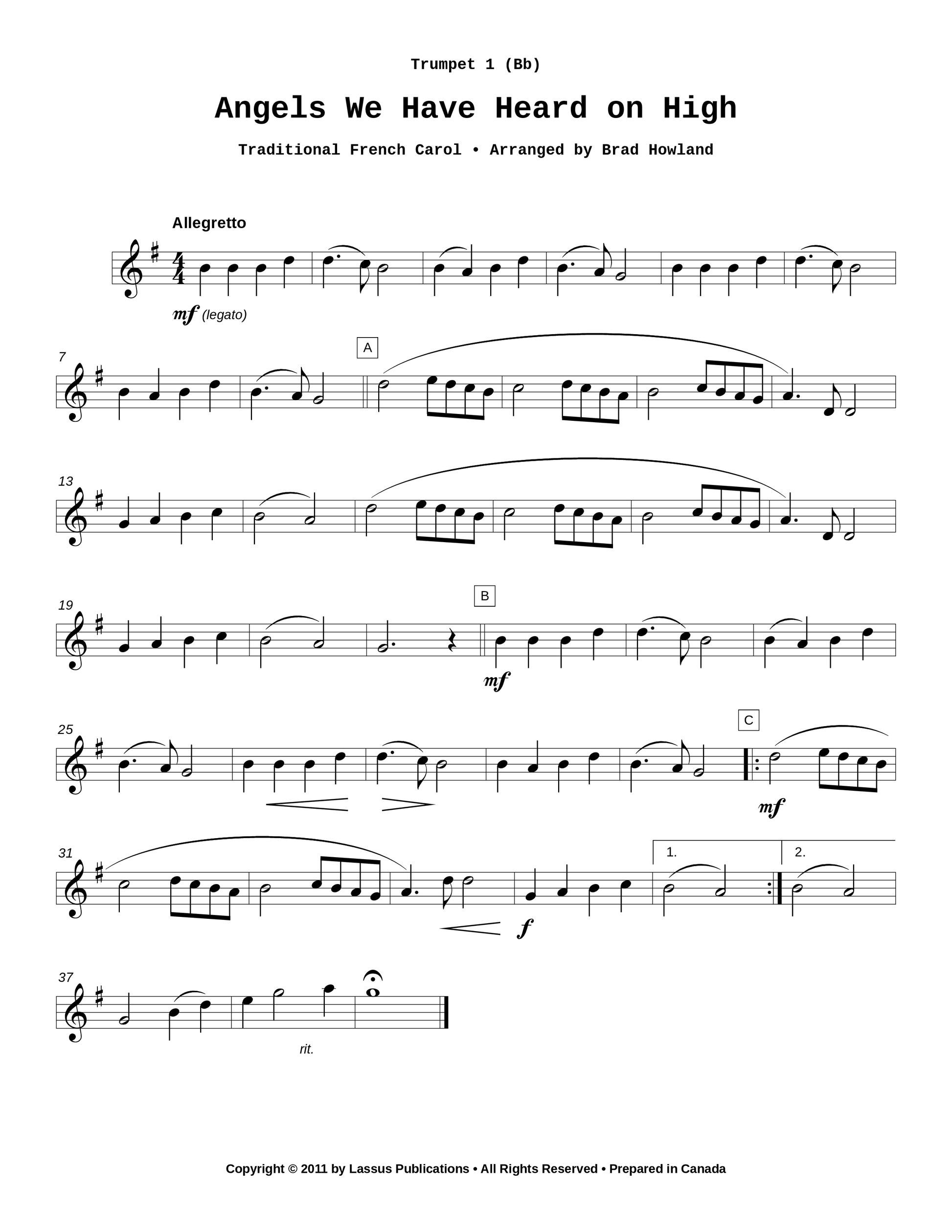 Alternate horn parts for Trumpet 2 and Trombone 1