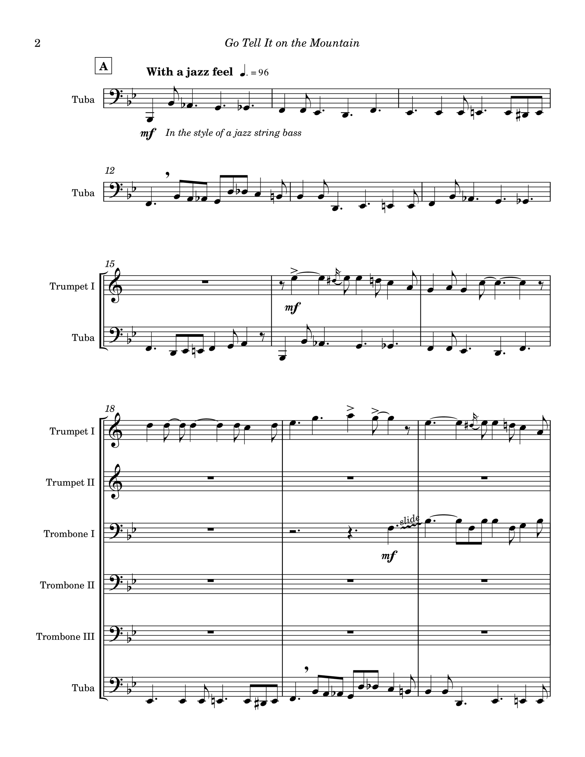 Mark's arrangement leans into the jazz feel, with tuba driving the rhythm and appropriate glissandi from the trombones. Great for college-level players and above!