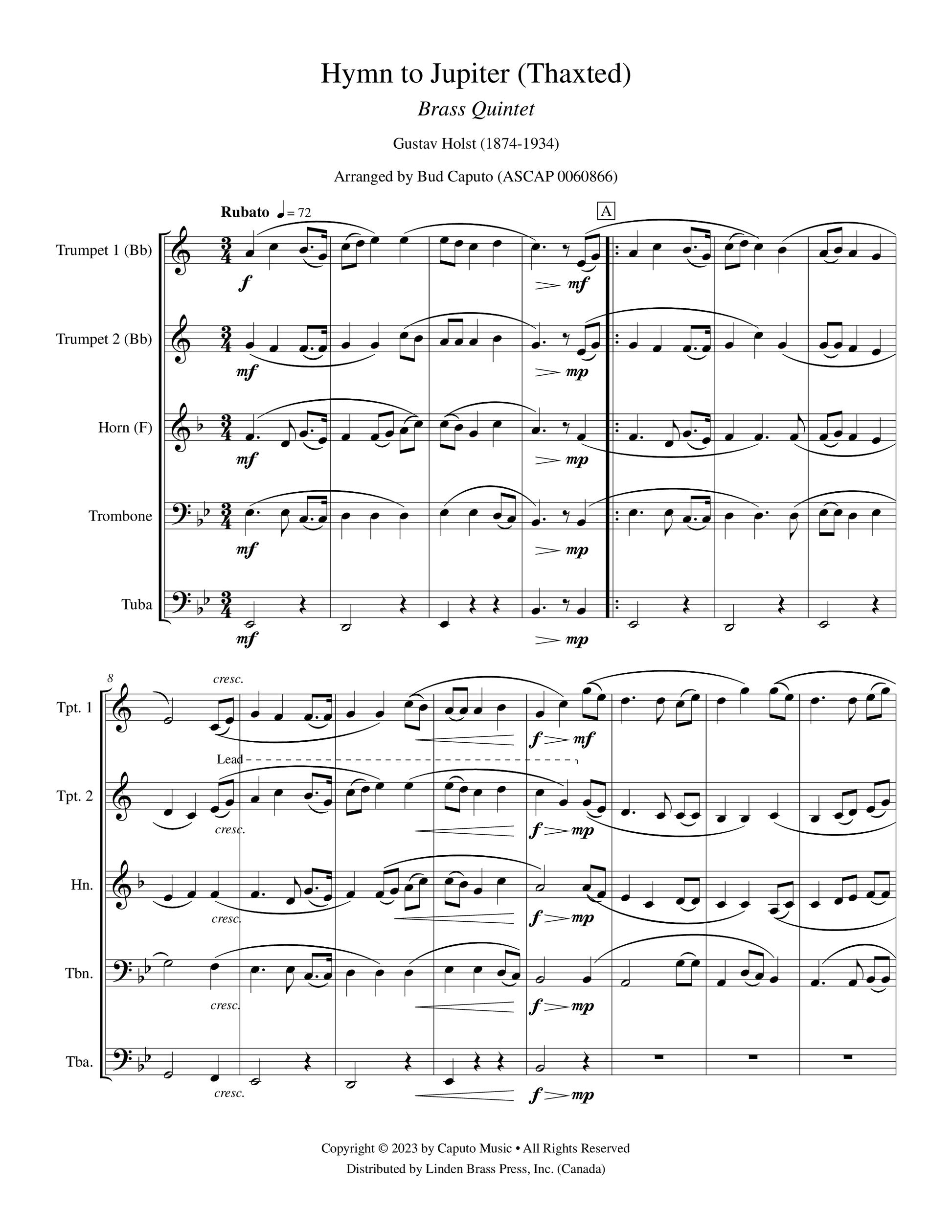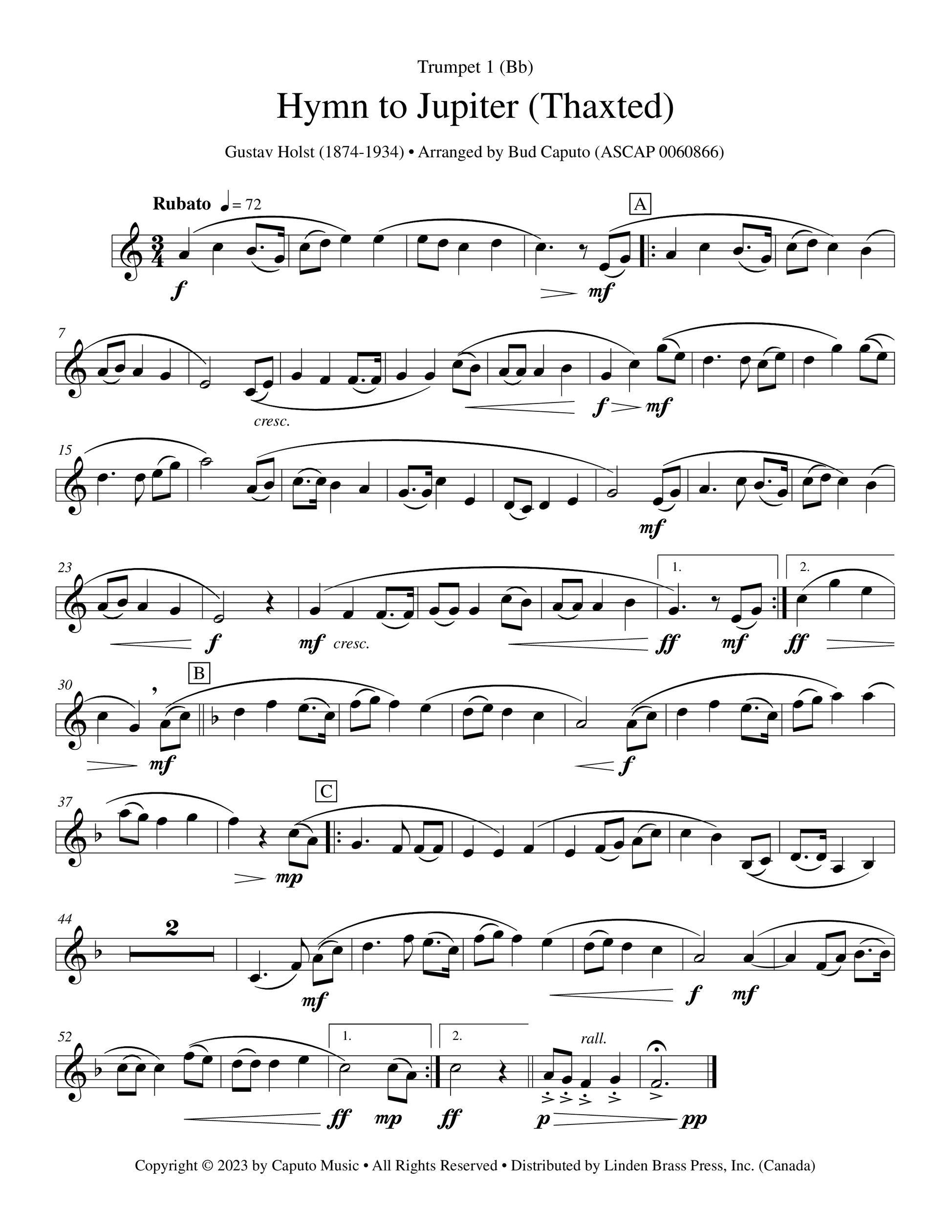 A lovely arrangement of the hymn tune by Gustav Holst, based on the Jupiter theme in The Planets, and named after Thaxted, a village where he spent much of his life. Holst also adapted the theme in 1921 to fit the poem "I Vow to Thee, My Country." Repeats could be omitted for a shorter version, if desired.