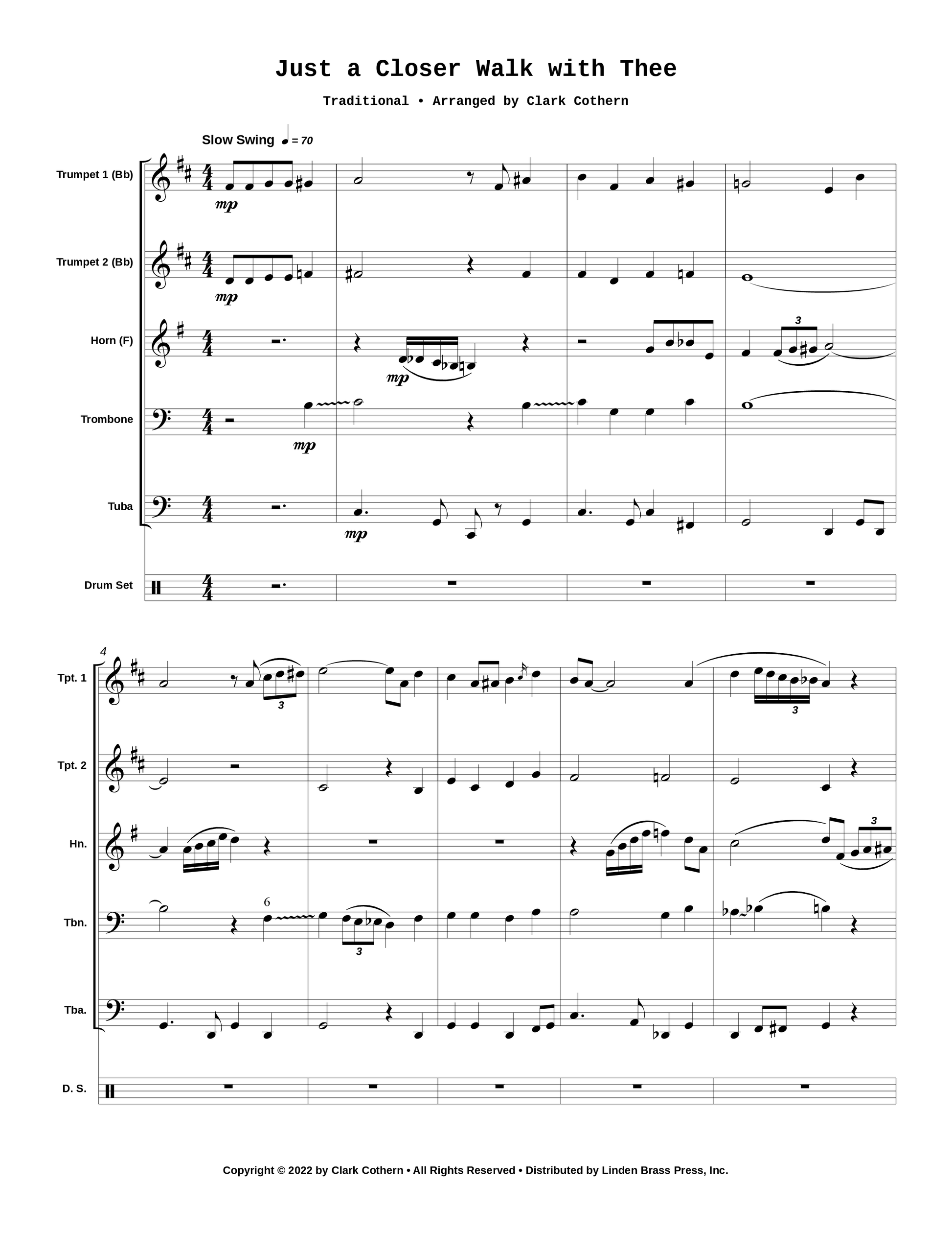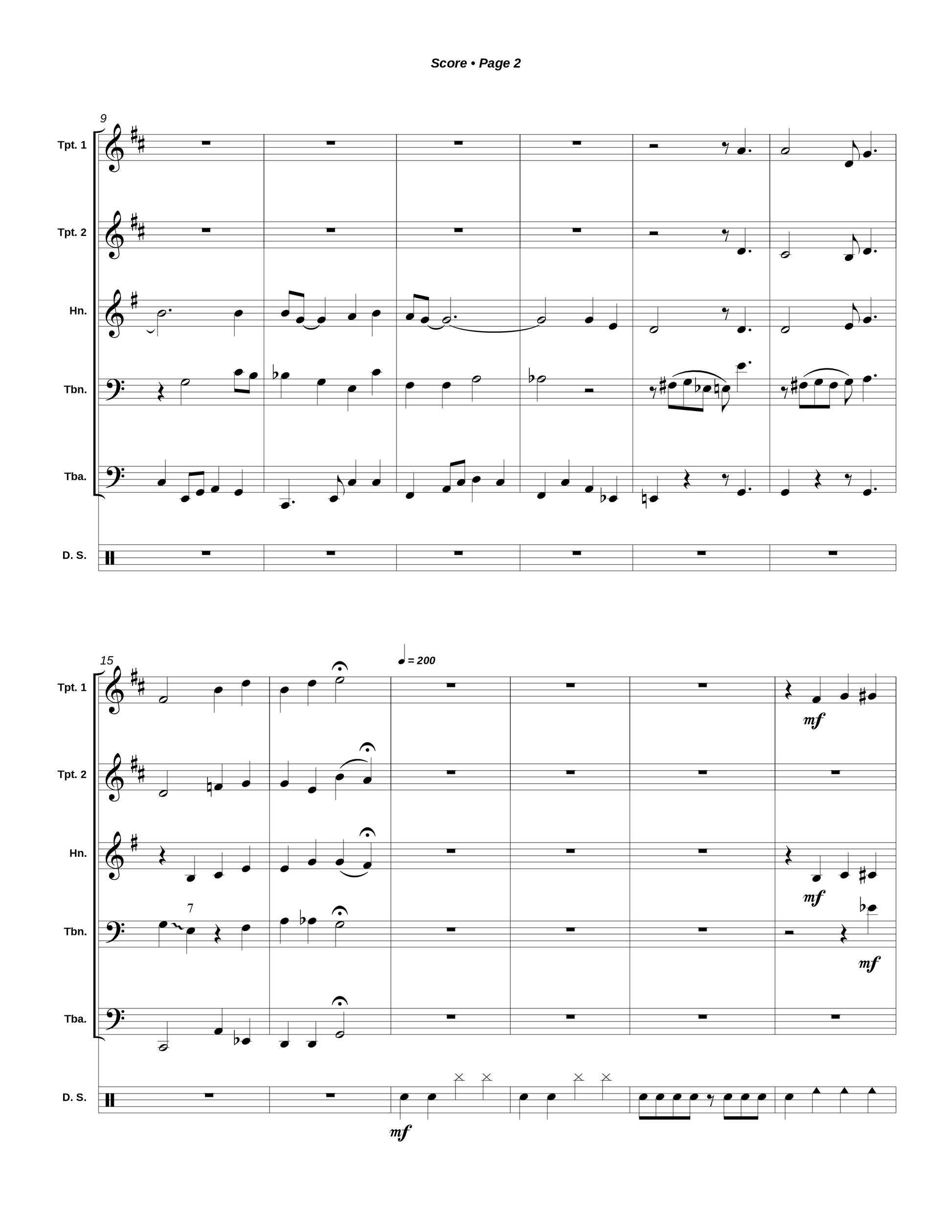 Two trumpets (Bb), horn, trombone, tuba, drum set