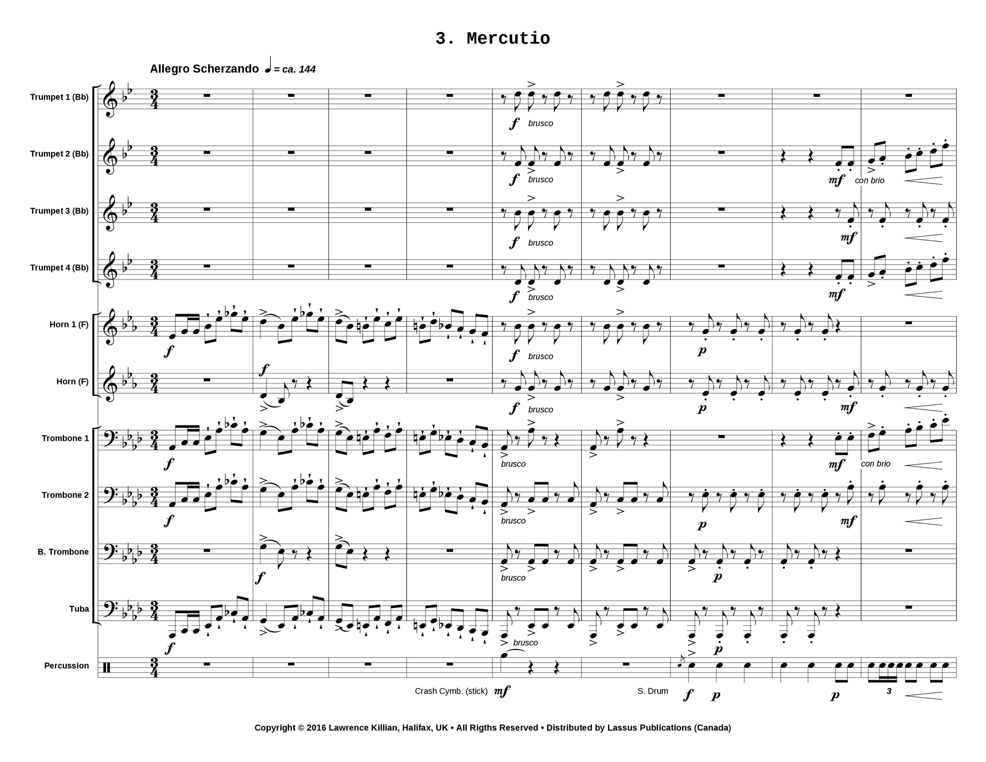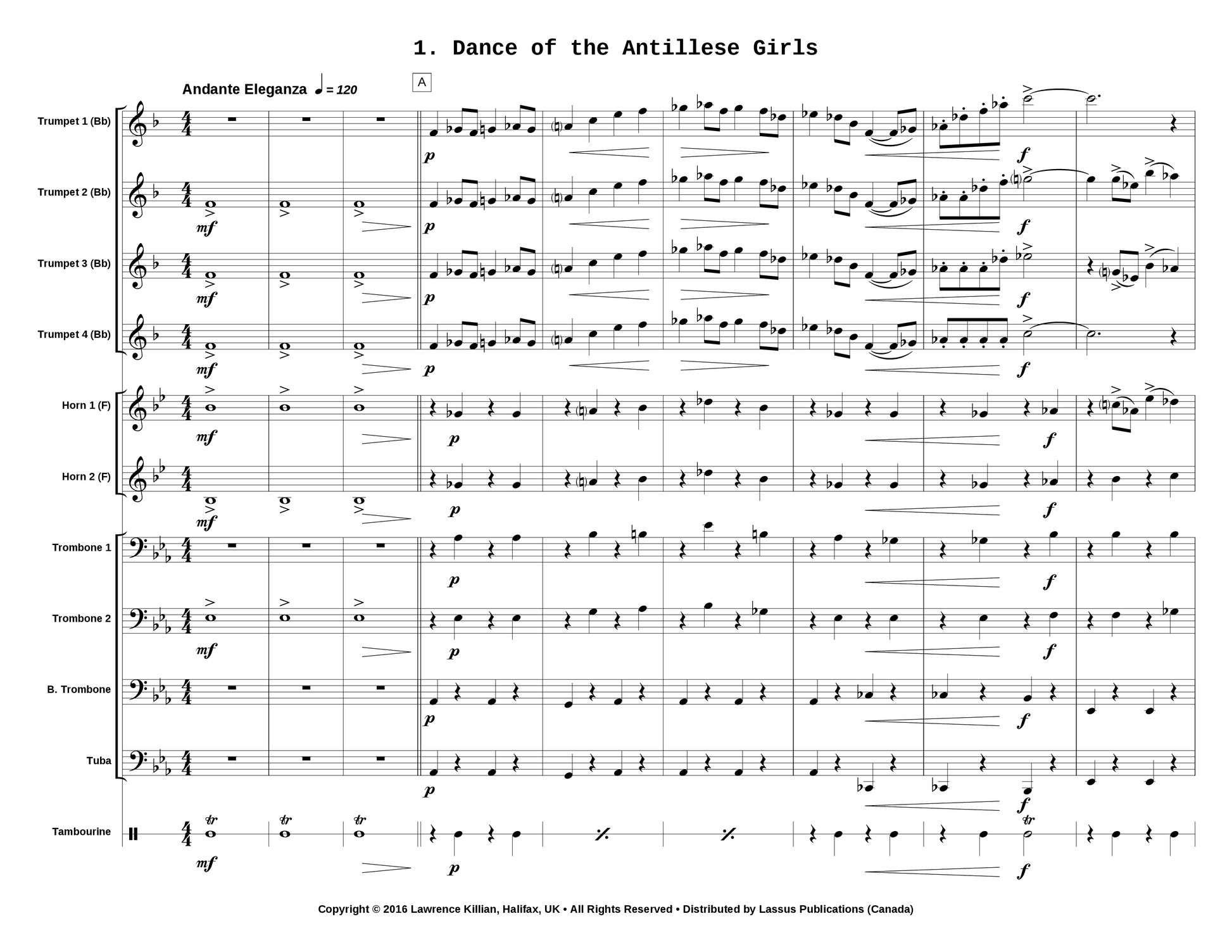 Three trumpets (Bb), Trumpet 4 (Bb/Eb), two horns, three trombones, tuba, percussion