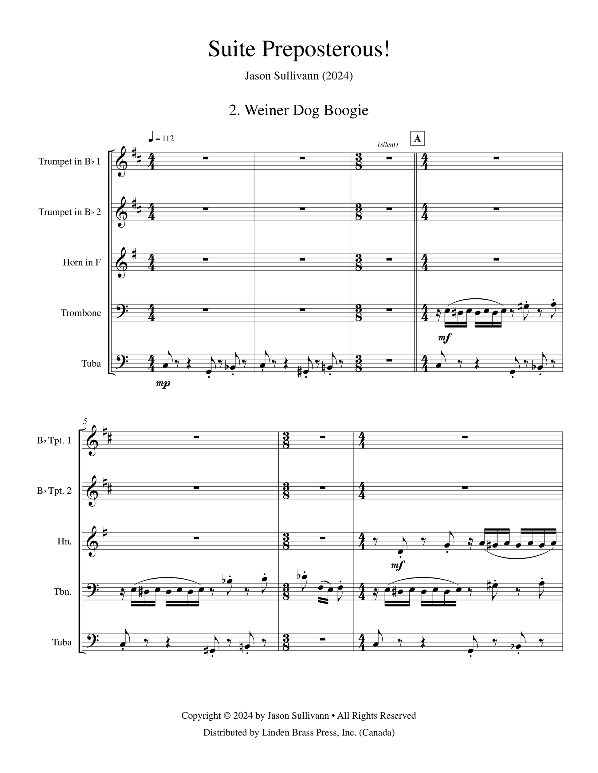 Weiner Dog Boogie is the second movement of Suite Preposterous! by composer Jason Sullivann.