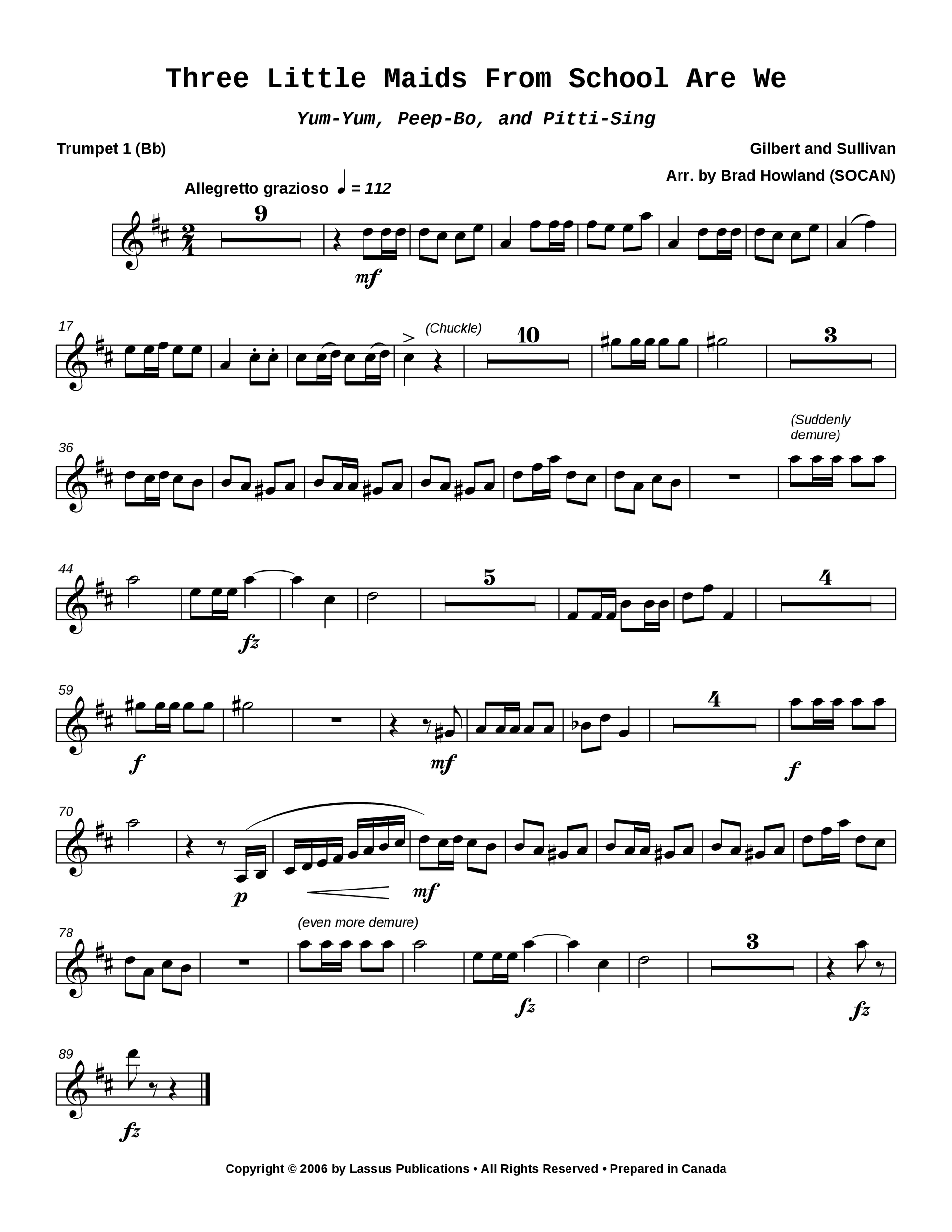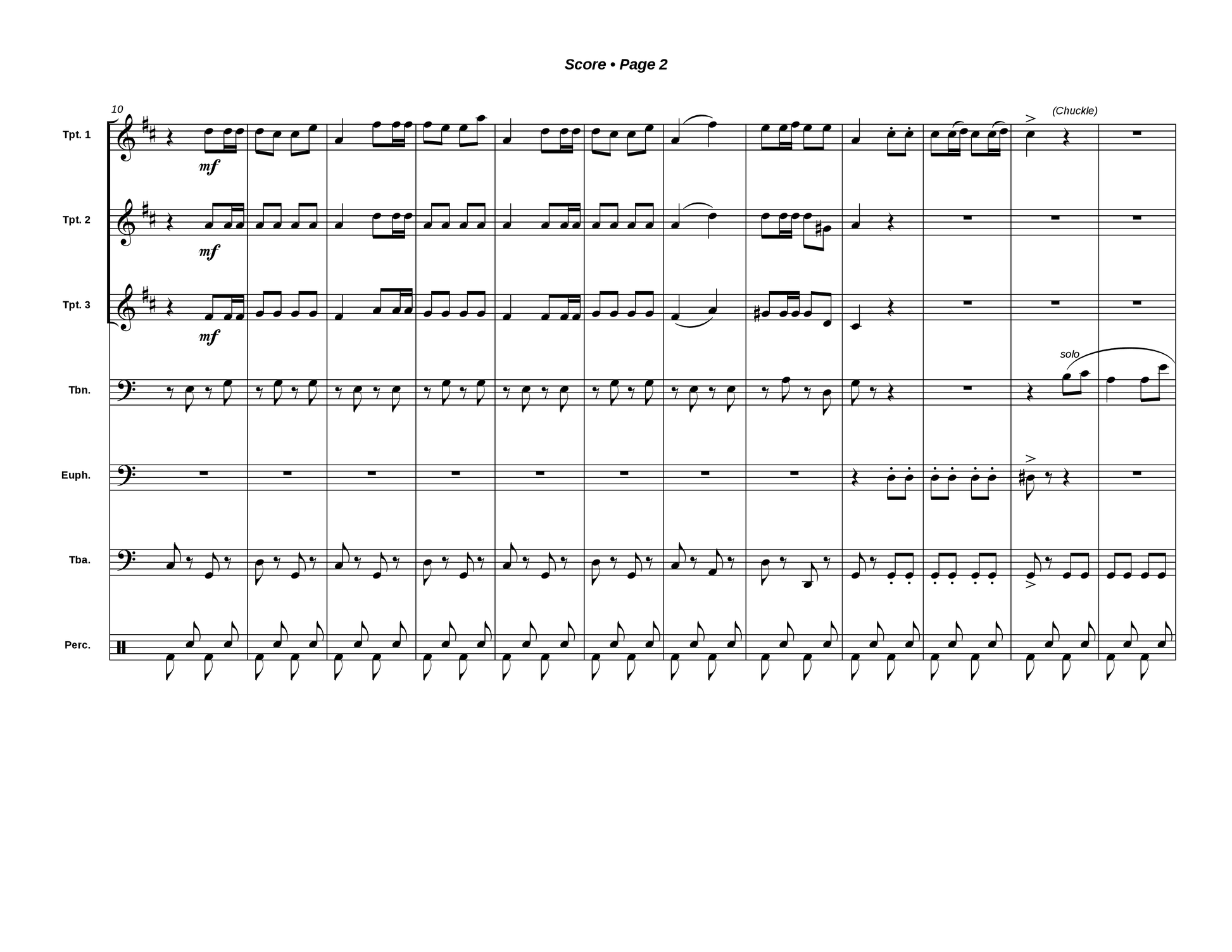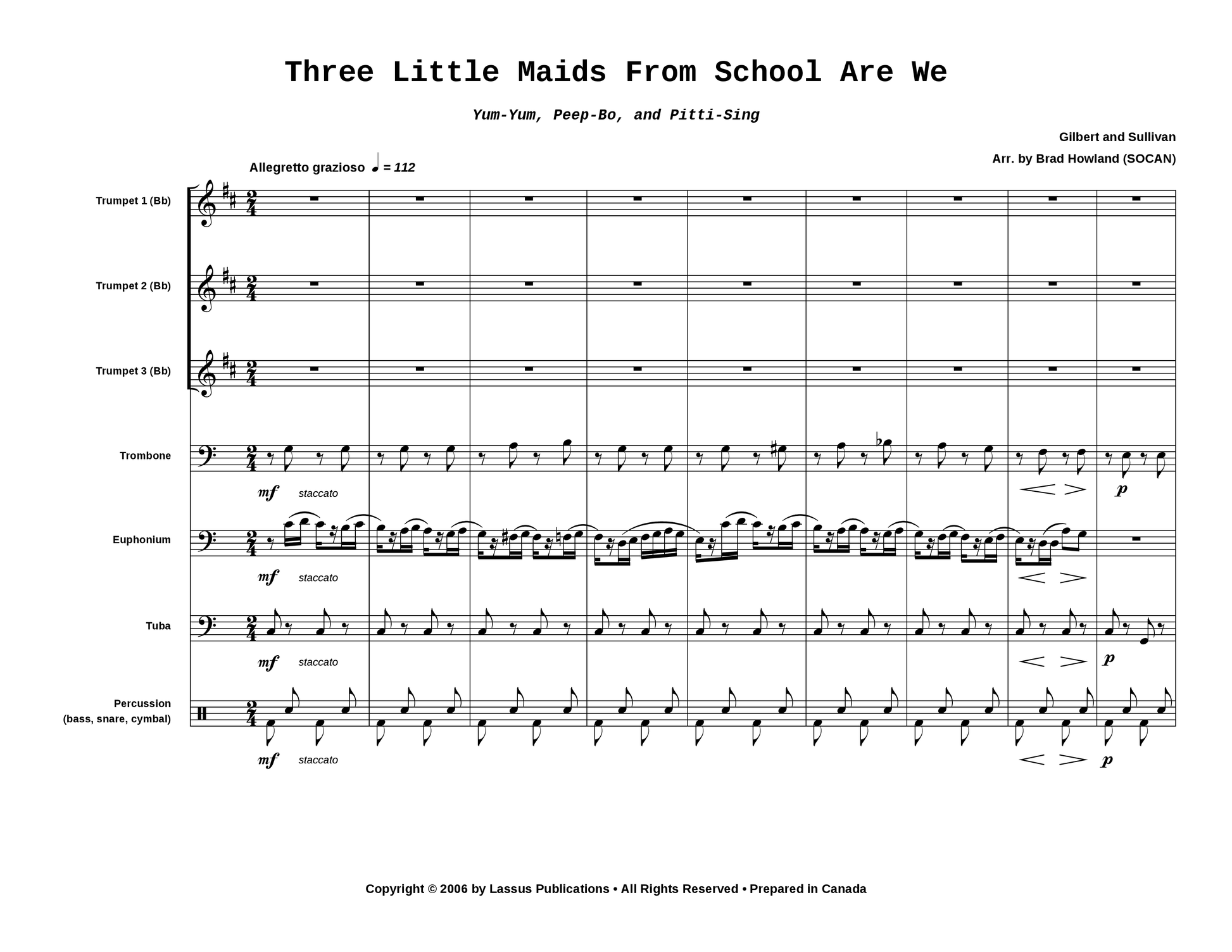 Three solo trumpets (Bb), trombone, euphonium, tuba, percussion