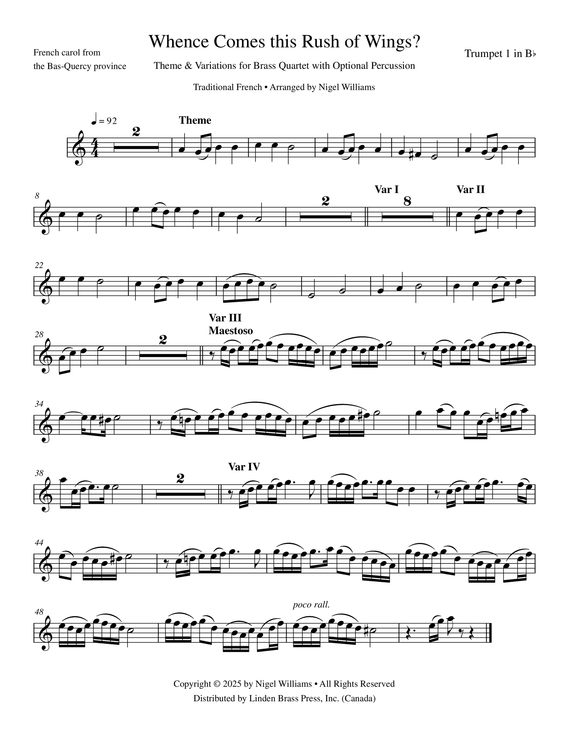 Whence Comes this Rush of Wings? is a traditional French carol that appeared in Carols Old and Carols New by Charles Lewis Hutchins, a collection that included both traditional and "modern" songs often used in church services and celebrations during the Christmas season.