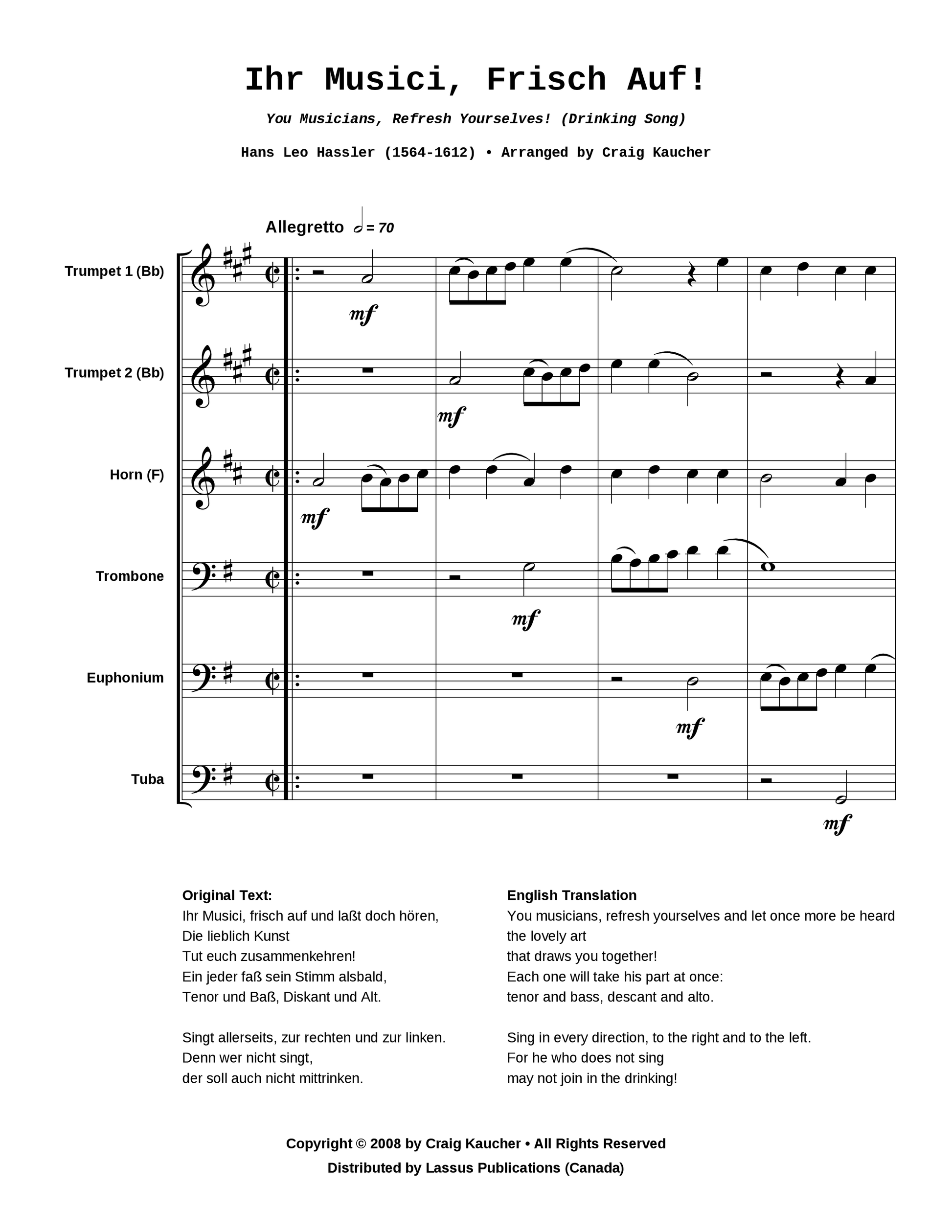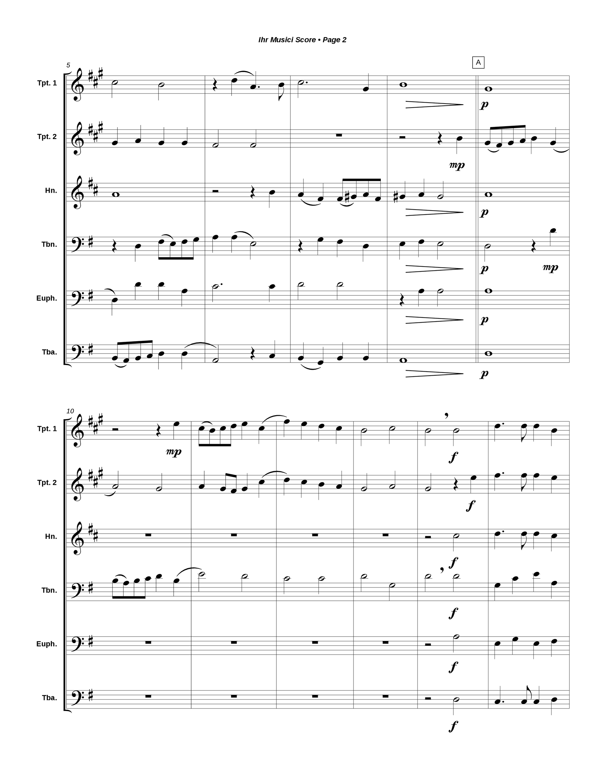 Two trumpets (Bb), horn, trombone, euphonium, tuba